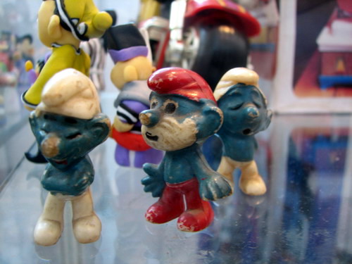 怀旧玩具展上80年代初的玩具蓝精灵,据说当时购买时国内动画尚未播放