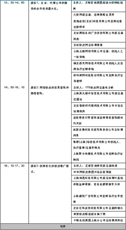 目前,本届中国游戏商务大会(CGBC)各论坛日程安排已基本确定,总日程详见: http://www.chinagbc.com.cn/Meeting_hyrc.aspx