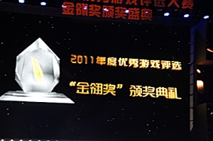 11月29日,被誉为游戏界“奥斯卡”之称的2011年金翎奖在北京人民大学如论讲堂隆重举行。作为最具国内乃至国际代表性和影响力的评选活动,本届“金翎奖”共有206款中国国内运营和有计划进入市场运营的主流游戏参与,共同角逐包括网络游戏、网页游戏、手机游戏、媒体、游戏公会在内的15个大奖。