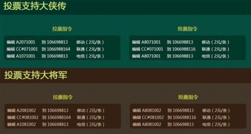 由于运营商通道限制,本次活动安徽、湖北、湖南、江西、河南 的移动用户,甘肃、湖北、河南、青海、辽宁、内蒙古、宁夏、山东、安徽、上海、广东 的联通用户,将无法参加本次投票,其他地区及电信用户都可以正常参与。北京用户可正常参于投票,但无法获得即得奖。