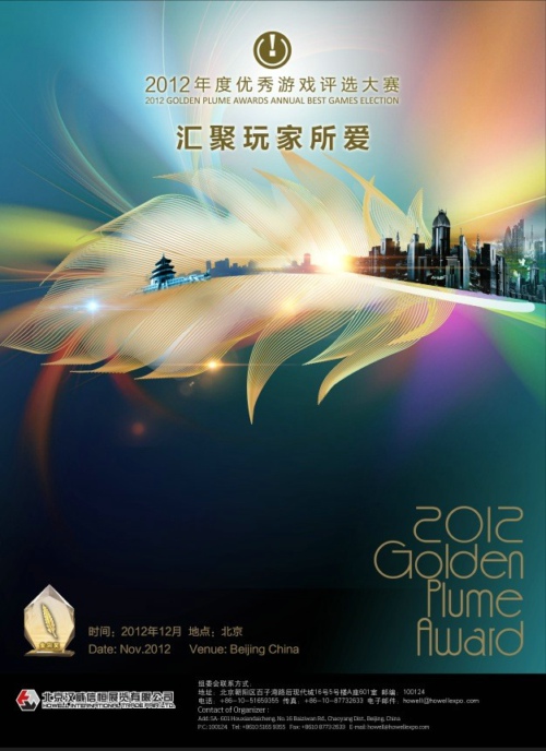2012年度优秀游戏评选大赛--“金翎奖”颁奖典礼将于2012年12月26 日14:00-17:00在人民大学如论讲堂举行。
