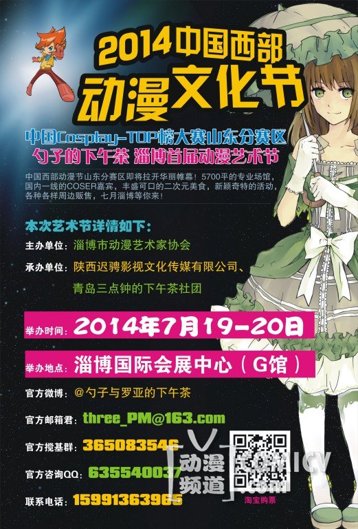 中国西部动漫节山东分赛区即将拉开华丽帷幕!5500平的专业场馆,国内一线的COSER嘉宾,丰盛可口的二次元美食,新颖奇特的活动,各种各样周边贩售,七月淄博等你来!