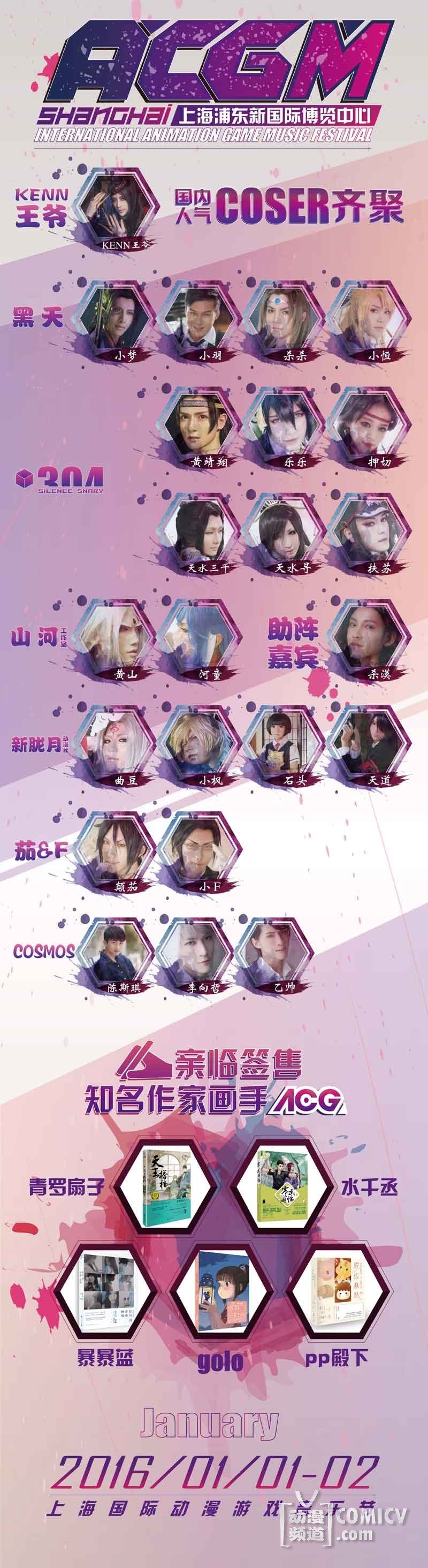 “ACGM上海国际动漫游戏音乐节”暨晚场“ACG金英奖颁奖晚会”将在2016年元旦隆重启动,这也是我们团队继“ACG动漫音乐节广州超级盛典”之后的又一次精心筹备制作,又一次打破次元壁的年度盛会。