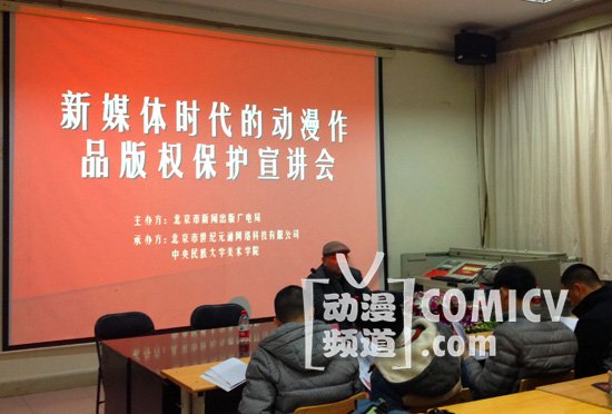 微博、微信时代,新媒体时代,动漫作品如何进行版权保护?动漫作者在日常生活中,遇到作品被盗用,如何违权?北京市新闻出版广电局为加强版权教育,深入推进版权进校园工作,根据国家版权宣传精神,开展以版权宣传进校园系列活动。此次活动来到到中央民族大学美术学院,和全院师生们一起讨论了“新媒体时代的动漫作品版权保护”问题。
