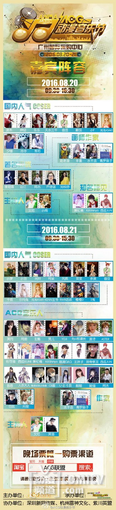 ACG动漫音乐节8月登陆广州国际采购中心,光影场照,华美舞袍,绽放全场!明星大咖、重量嘉宾,跨越次元,要你好看!音浪燃城,明星云集!带给你别样视听盛宴!叫上你的小伙伴,赶快约过来!8月20日——8月21日,跨越次元,引爆妖都!