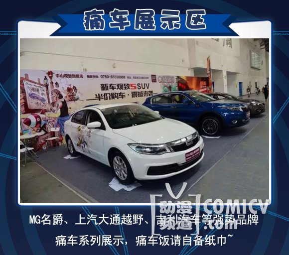 痛车展示区:MG名爵、上汽大通越野、吉利汽车等强势品牌痛车系列展示,痛车饭请自备纸巾~