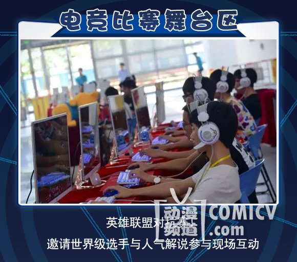 电竞比赛舞台区:英雄联盟对抗赛!邀请世界级选手与人气解说参与现场互动