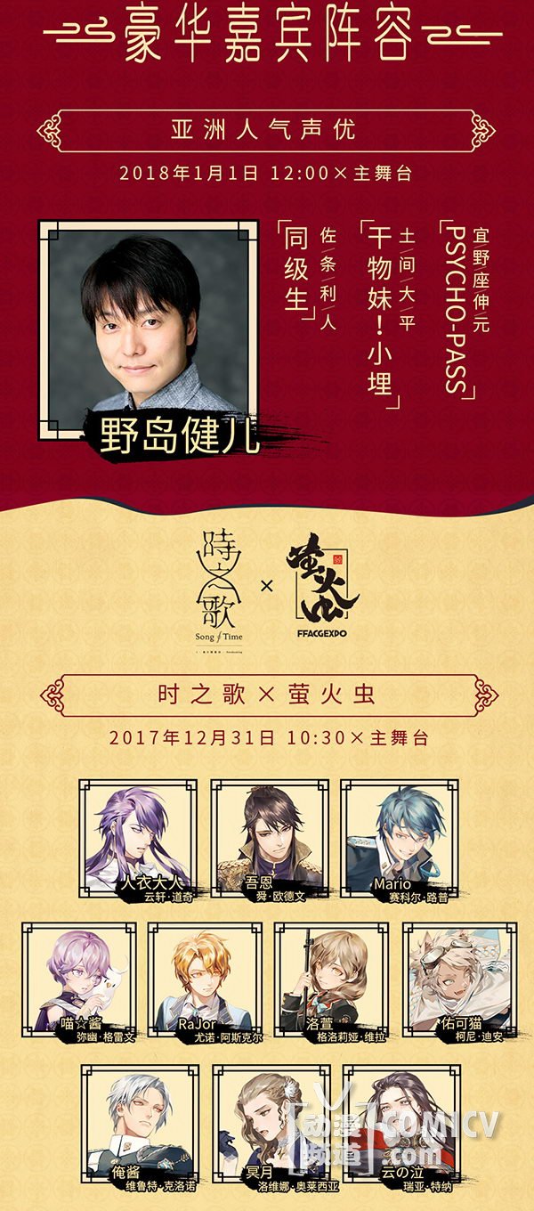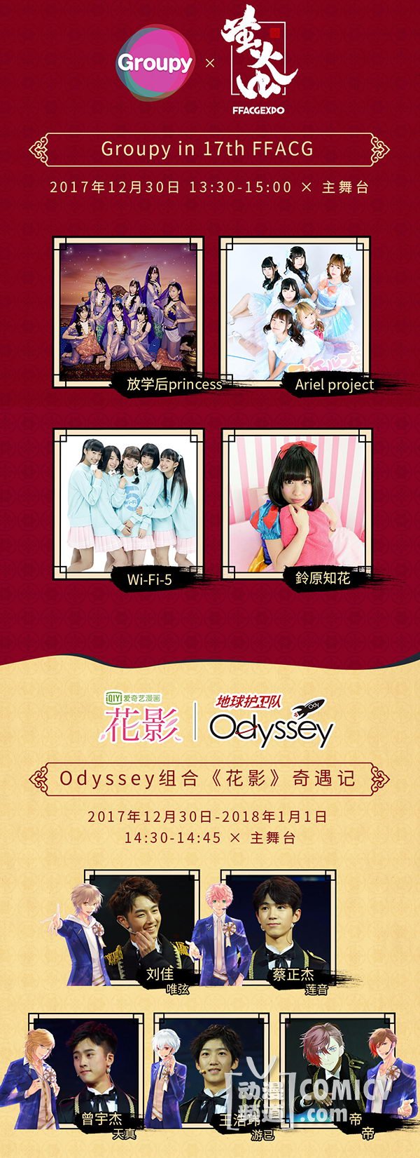 ▲亚州人气声优野岛健儿重磅出席、时之歌Project实力唱见华丽登场、放学后princess、Ariel project、Wi-Fi-5、?原知花梦幻降临、BAOZI&HANA、Ely、二鬼、昭君等当红coser,Odyssey组合《花影奇遇记》!
