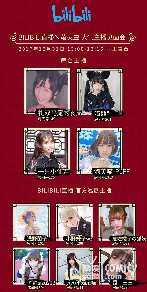 ▲本次萤火虫新年狂欢祭将有近五十大品牌厂商鼎力加盟,天闻角川、bilibili、腾讯游戏、网易游戏、久游网、西山居、完美世界、艾漫、第一弹、咪咕阅读、黑桃互动、边锋游戏、咕噜游戏、盖娅互娱将携诸多会场首发周边、图书和人气游戏参展! 更有官方指定耳机品牌-1MORE万魔耳机为大家带来精彩万分的 “1MORE万魔杯”绝地求生-吃鸡挑战赛!