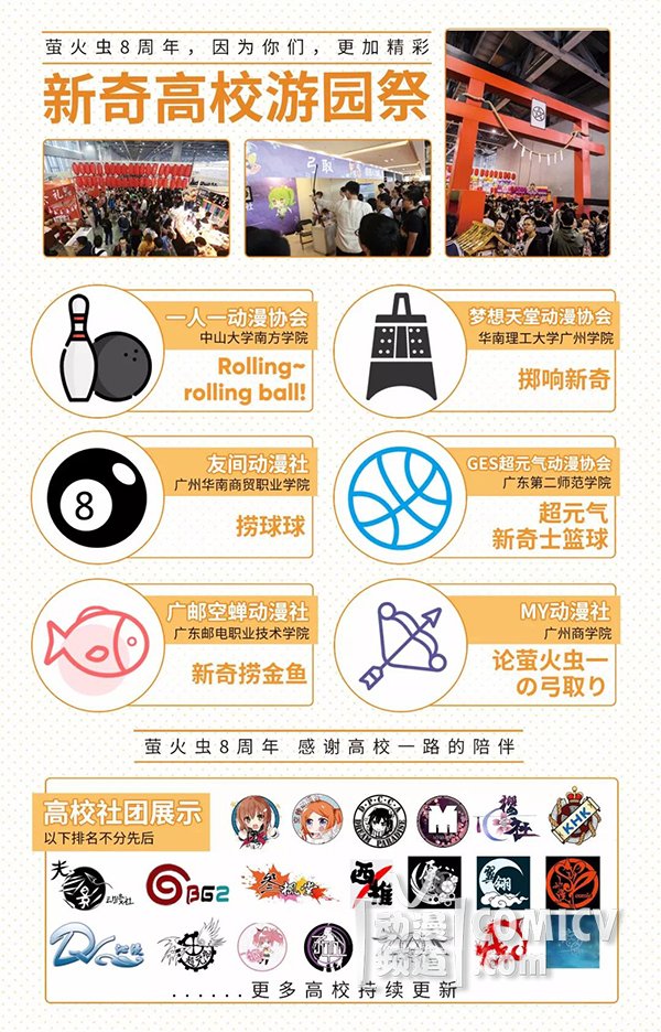 今年7月就是虫娘8周年,8年来,感谢各大高校社团为萤火虫带来各种有趣的活动与欢乐的体验!本届高校游园祭继续与大家见面!虫娘爱你们~