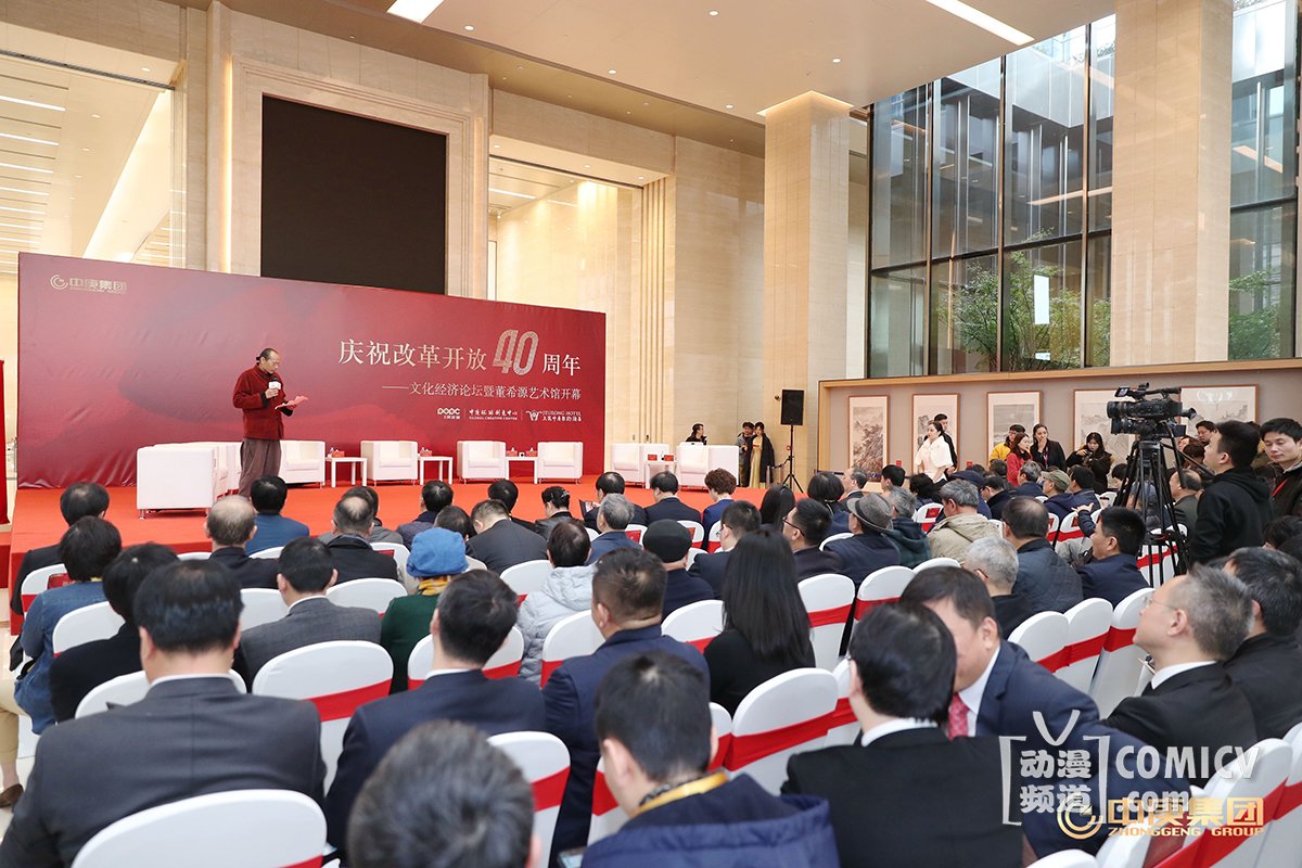 仪式结束后,在舞狮的引领下,众嘉宾移步中庚环球创意中心,参加庆祝改革开放40周年——文化经济论坛暨董希源艺术馆开幕。