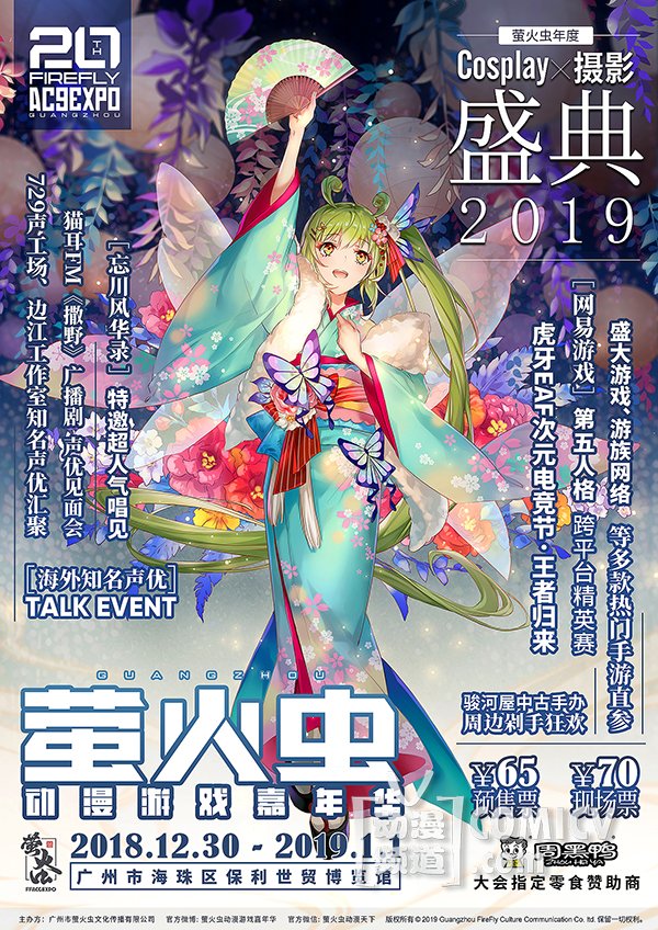 第20届萤火虫动漫游戏嘉年华即将劲爆来临!超多人气嘉宾、实力商家、独家企划陪你跨年!2018年12月30日-2019年1月1日,我们在广州保利世贸博览馆5、6号馆等你!
