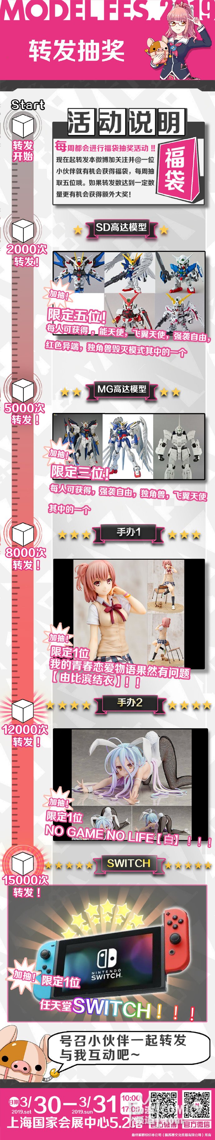 2019年3月30日-2019年3月31日, 国家会展中心(上海)5.2号馆,首届MODEL FES.手办模型祭火热筹备中!参展厂商首度公开!日本著名动画监督,动画师,机械设计师大师邀请策划中.还有众多日本知名原型师和国内原型师应邀参展!还有更多日本嘉宾和企业等待公布!