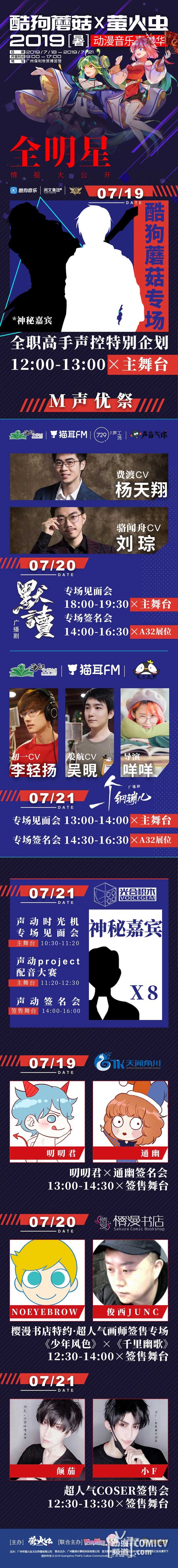 2019年7月18日-21日(一共4天)由萤火虫文化主办、酷狗音乐联合主办的第22届酷狗蘑菇×萤火虫动漫音乐嘉年华,盛大登陆广州保利世贸博览馆4/5/6号馆。超百个国创IP来袭,近百位次元红星齐聚给你们带来一场不一样的二次元文化狂欢盛会。