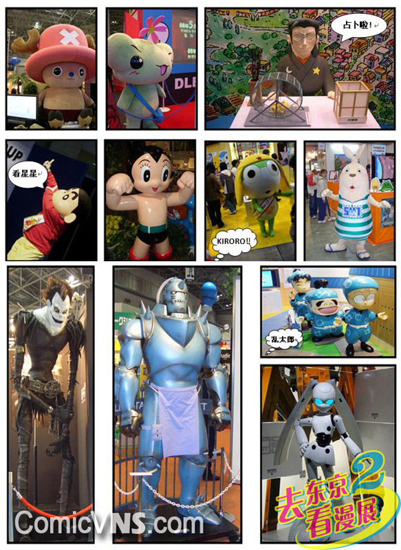 各家展商在展位上推出了当红人气角色的模型,KIRORO军曹依然是博得大小观众的好感,原设比例的阿尔让人惊叹,可爱的忍者太郎正在路边闲逛,小新的表演恶搞万岁,超大版乔巴Q味大升。